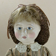 R John Wright. From my studies, I sculpted the head you see here plus used it in scaled down versions for my many smaller Izannahs. The molded papier mache head is covered in special cotton knit, like the originals, with a cloth body intended to be stuffed