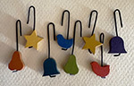 Shown above is the 9" feather tree not shown in the display house, but is included in the set. The tree has 9 branches, each with an ornament, a wooden candle and a turned and painted wooden base. There is a star on top and a garland of painted wooden beads. I photographed the wooden ornaments separately because they are hard to see amidst the feathers. |