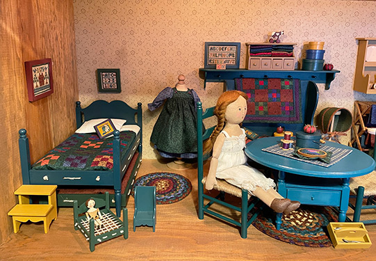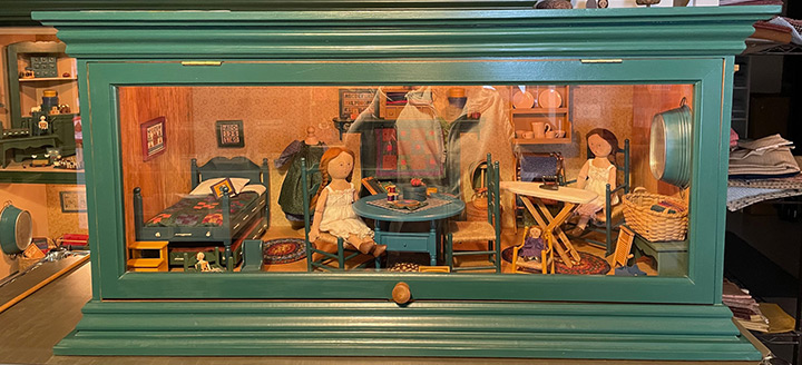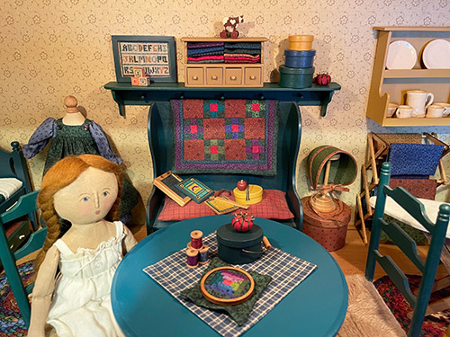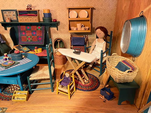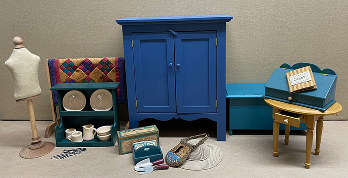 ALSO AVAILABLE: This series was only possible because I made it my first series of Clubs. These early clubs allowed many many people to acquire the items, starting with the Basic Doll, in either kit form or as finished items. At the end of the Finished Clubs, I offered a display shelf house with a glass front and a lighted interior. Among the items given back to me is one of these displays with all of its contents, which I have shown in the last photos.